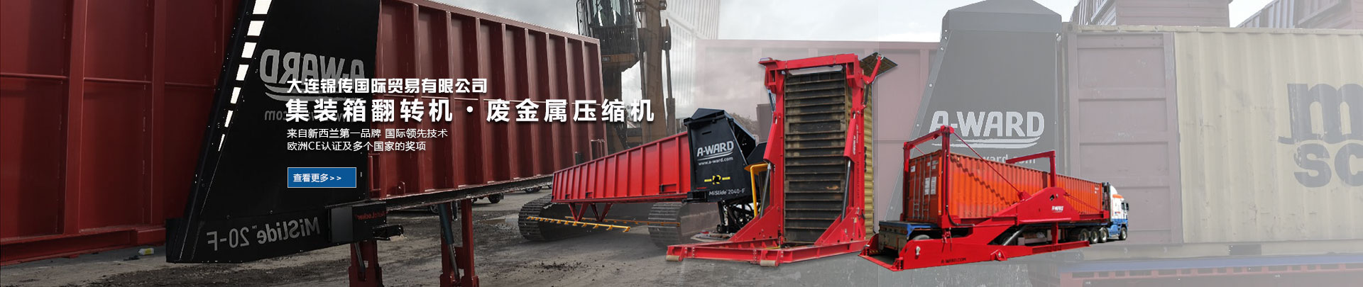 大連錦傳國際貿易有限公司于2013年11月與新西蘭A Ward公司達成戰(zhàn)略合作,成功代理集裝箱翻轉機、廢金屬壓縮機等產品在中國大陸的銷售、維護及保養(yǎng)業(yè)務。本公司重合同、守信用,保證產品質量,以經營多種特色的產品和薄利多銷的原則,贏得了廣大客戶的信任與厚愛?,F長期出口產品至澳大利亞,巴西,德國,俄羅斯,哥倫比亞,美國,泰國,羅馬尼亞,新西蘭 ,意大利,越南,印度,印度尼西亞等國家。
